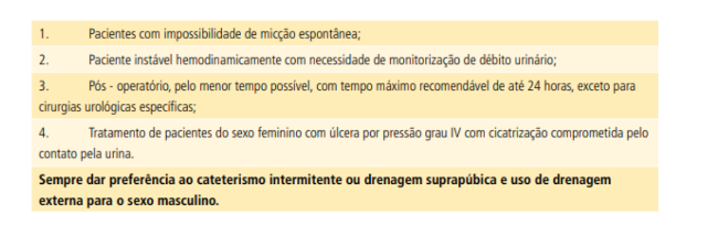 Indicação do cateter urinário
