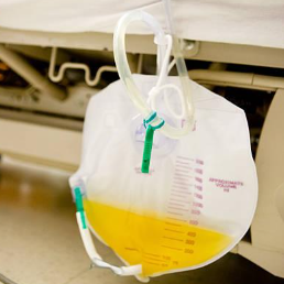 Esvaziar a bolsa coletora regularmente, utilizando recipiente coletor individual e evitar contato do tubo de drenagem com o recipiente coletor;